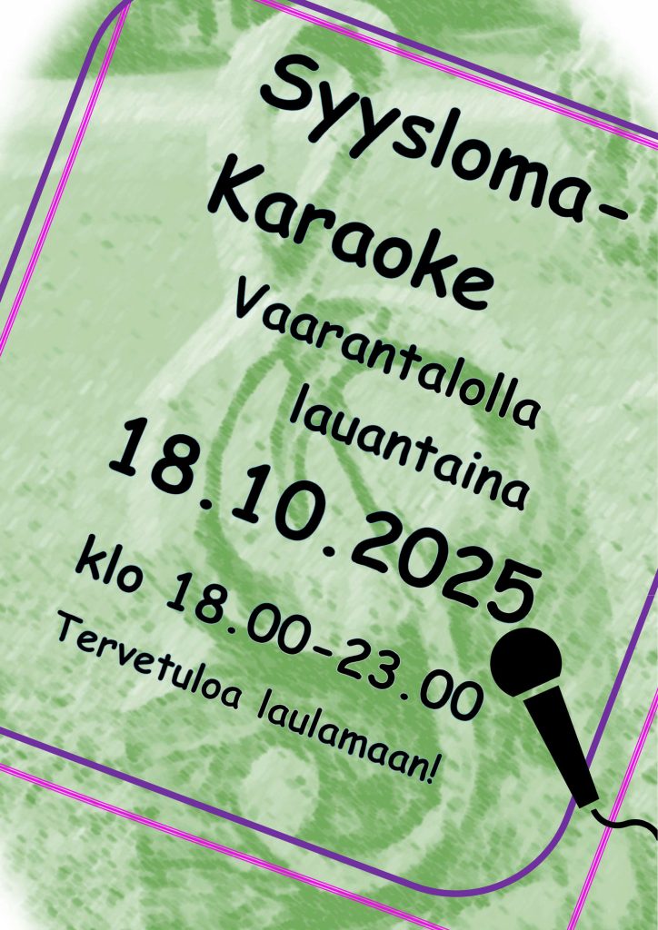 << Karaokeilta Vaarantalolla 2.8.25 klo 18.00-23.00 TERVETULOA!